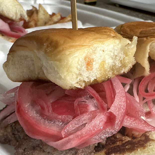 Next bam, there was born the Tribe Vibe Slider. An original recipe that is both sweet and tangy. The secret sauce coming together with pickled red onions, are a joy made in culinary heaven. From the toasting of the bun to the careful ingredients chosen for the aioli you cannot get a better slider for $2.50.
