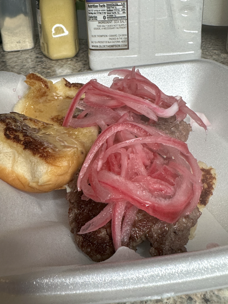 In conclusion, the versatility of this burger is tremendous. You can add cheese, leave out the red onions, add ketchup or mustard and go traditional. We planned it just that way. At 3a you don’t want, rigid you want fresh food that’s quick and easy. The slider comes in several variations. Our 2 for $5 is the best in Vegas.